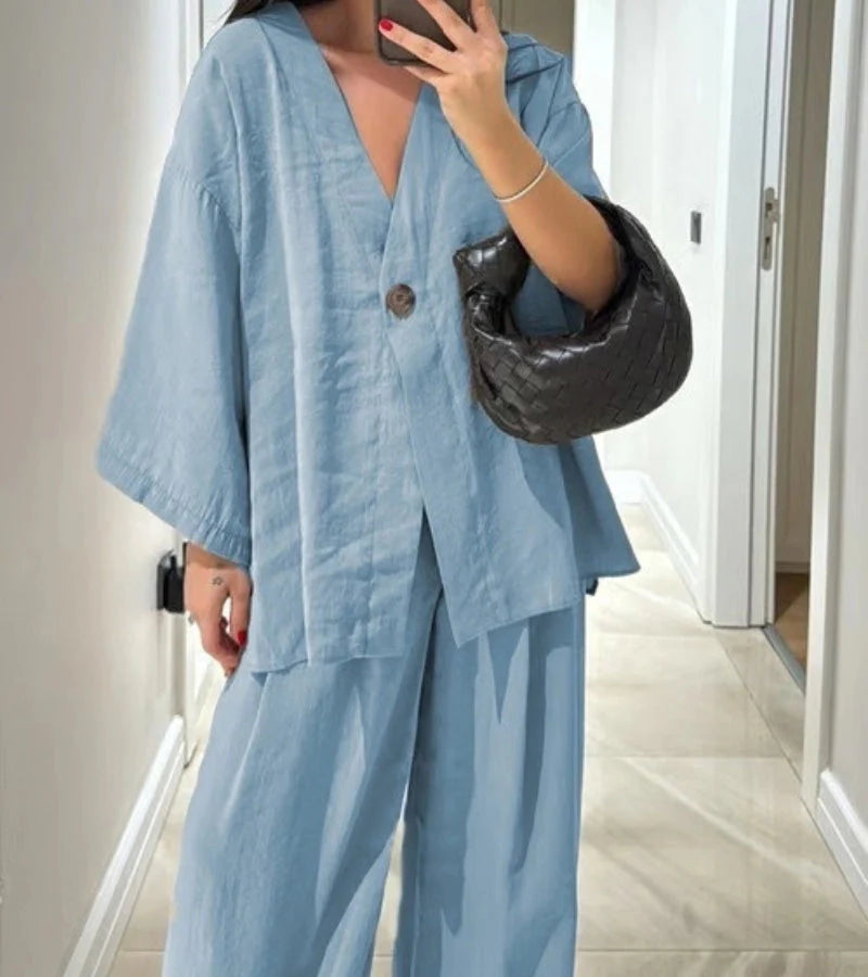 ✔ Ensemble deux pièces : veste ample à manches larges + pantalon fluide taille haute