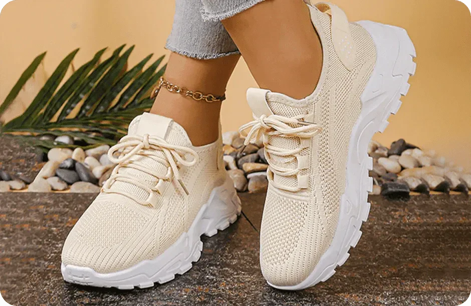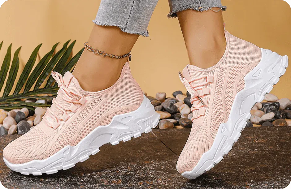 Les baskets Élise allient style moderne et confort au quotidien. Leur maille légère et respirante garde vos pieds au frais, tandis que leur semelle souple et antidérapante assure une marche fluide et stable du matin au soir.